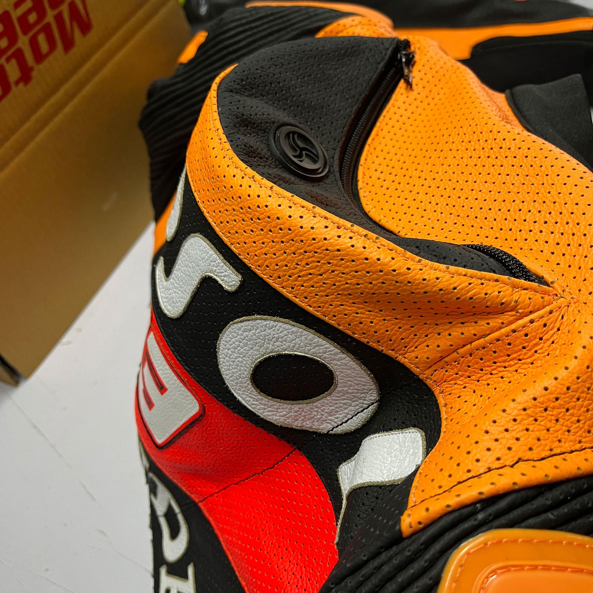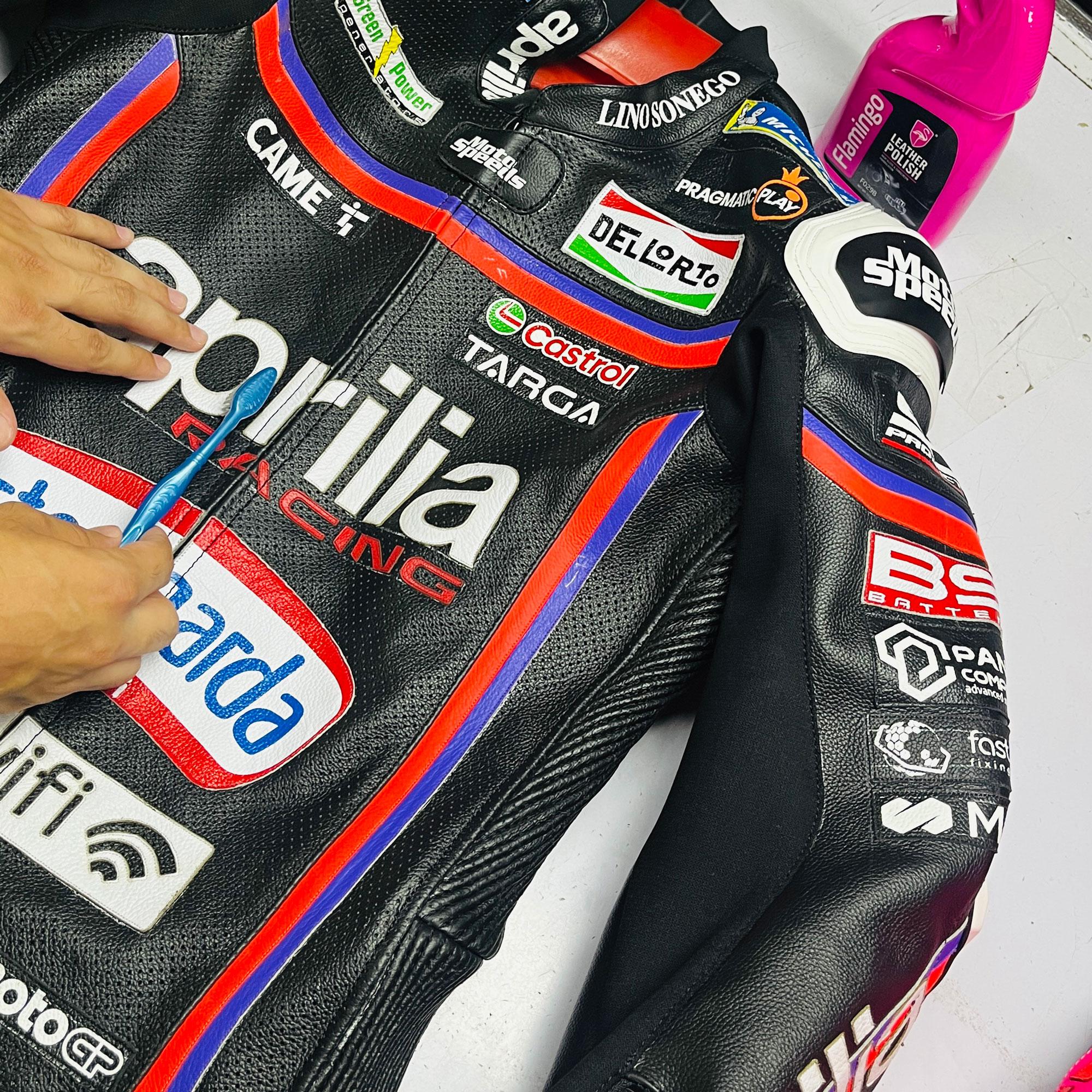 De ser till att lädrets struktur på vänster ärm matchar strukturen på höger ärm.