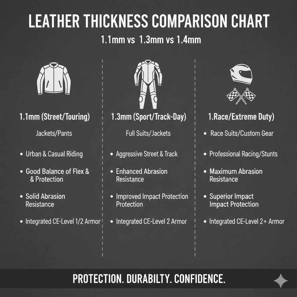 Skydd för motorcykel med lädertjocklek handlar inte bara om siffror. Det handlar om att hitta rätt balans mellan nötningsbeständighet, flexibilitet, vikt och komfort.